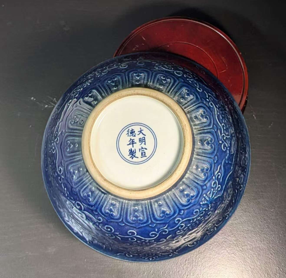 明代雾蓝釉龙纹碗