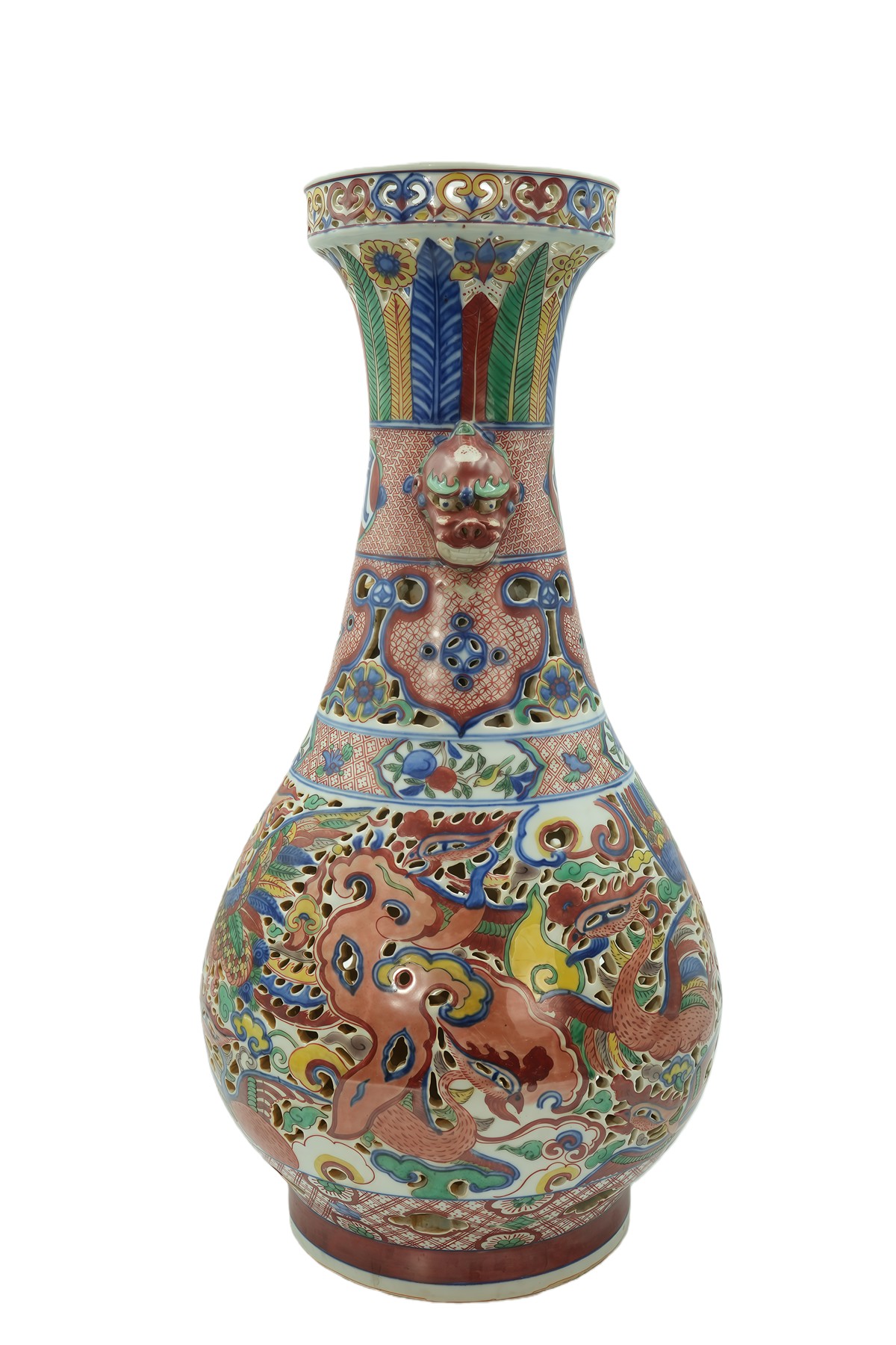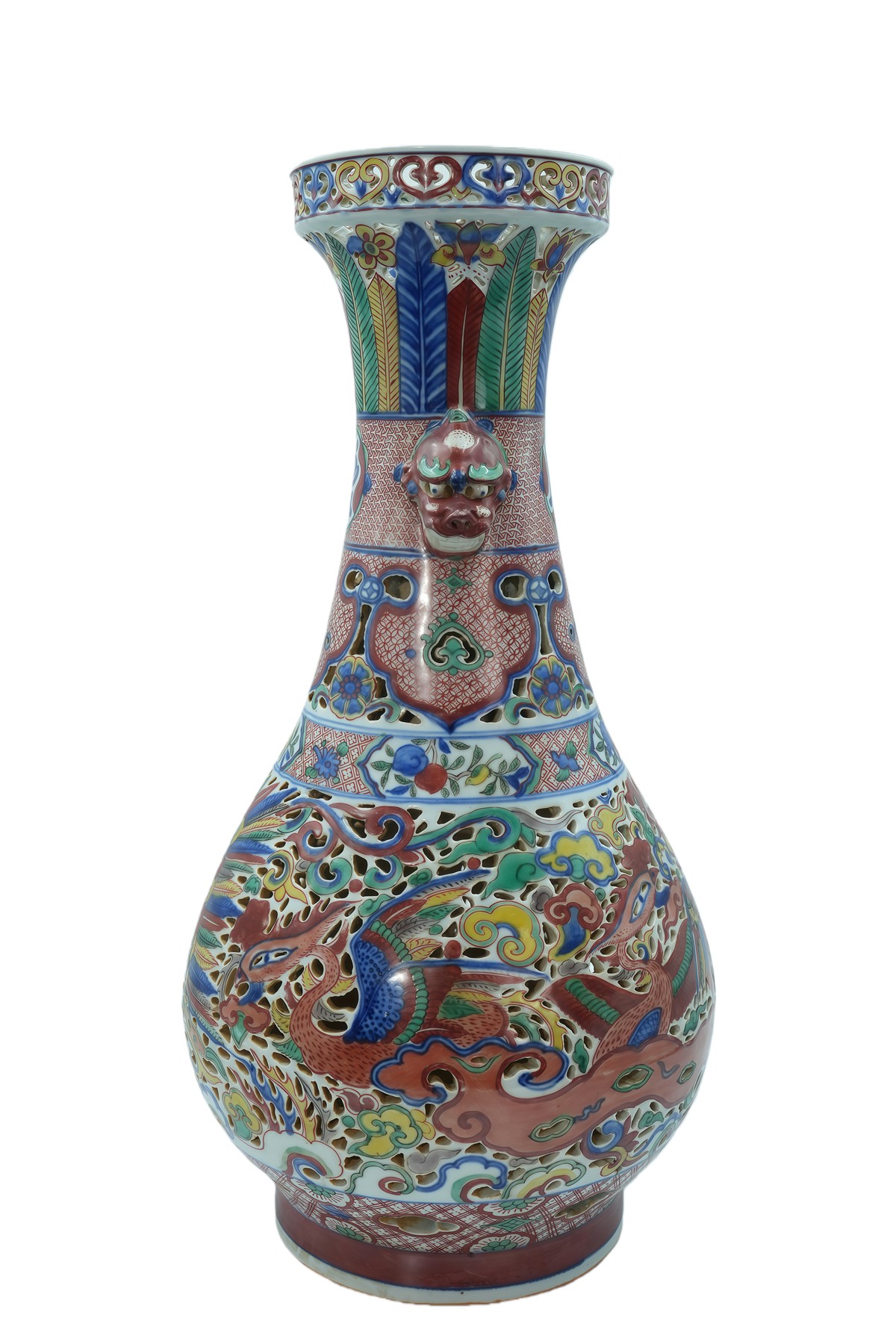 素三彩龙穿祥云仙鹤纹大盘