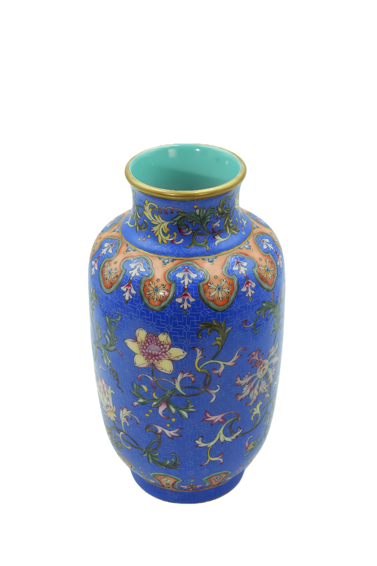 松石绿釉天圆地方诗文瓶