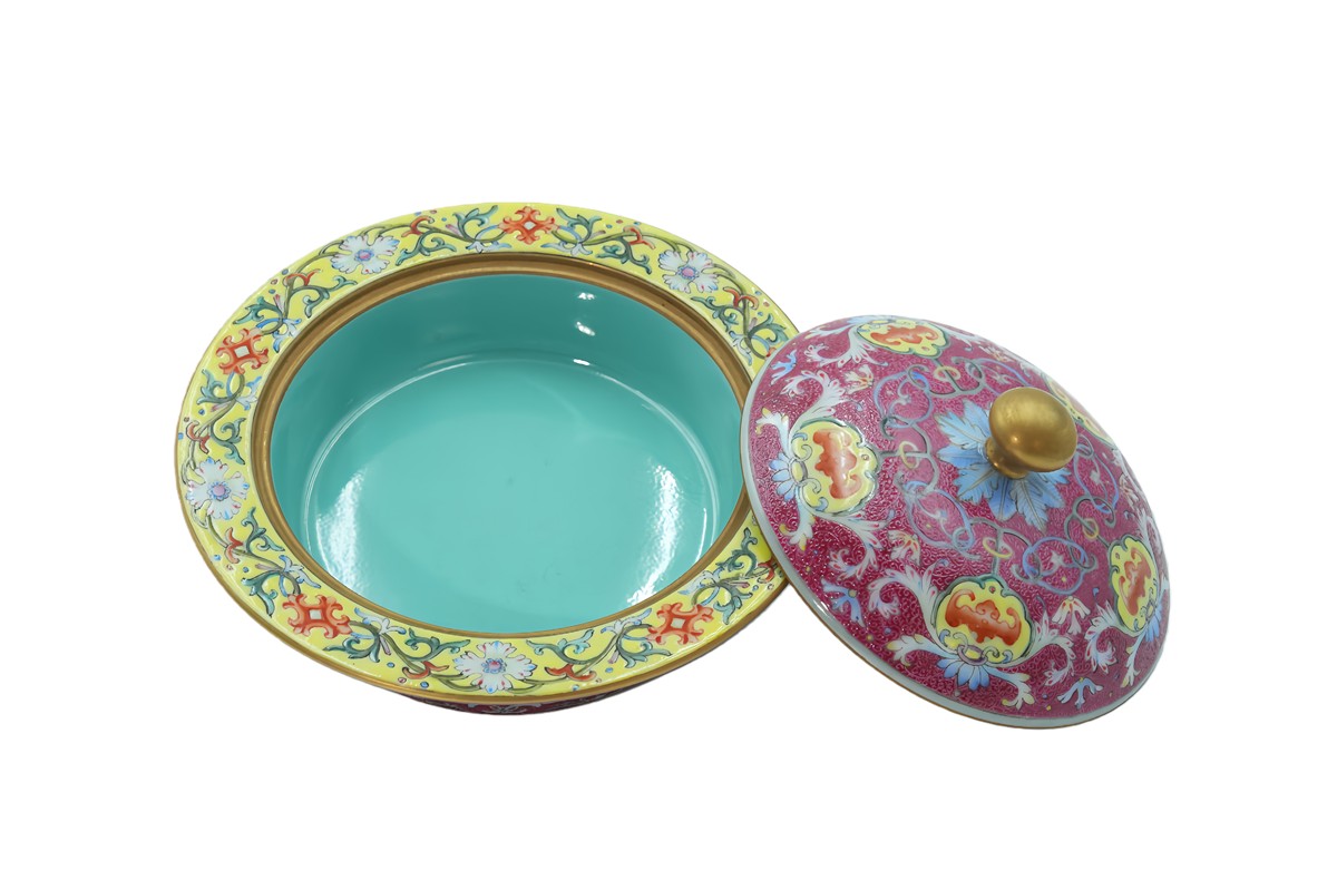 青花描金龙纹盖盒