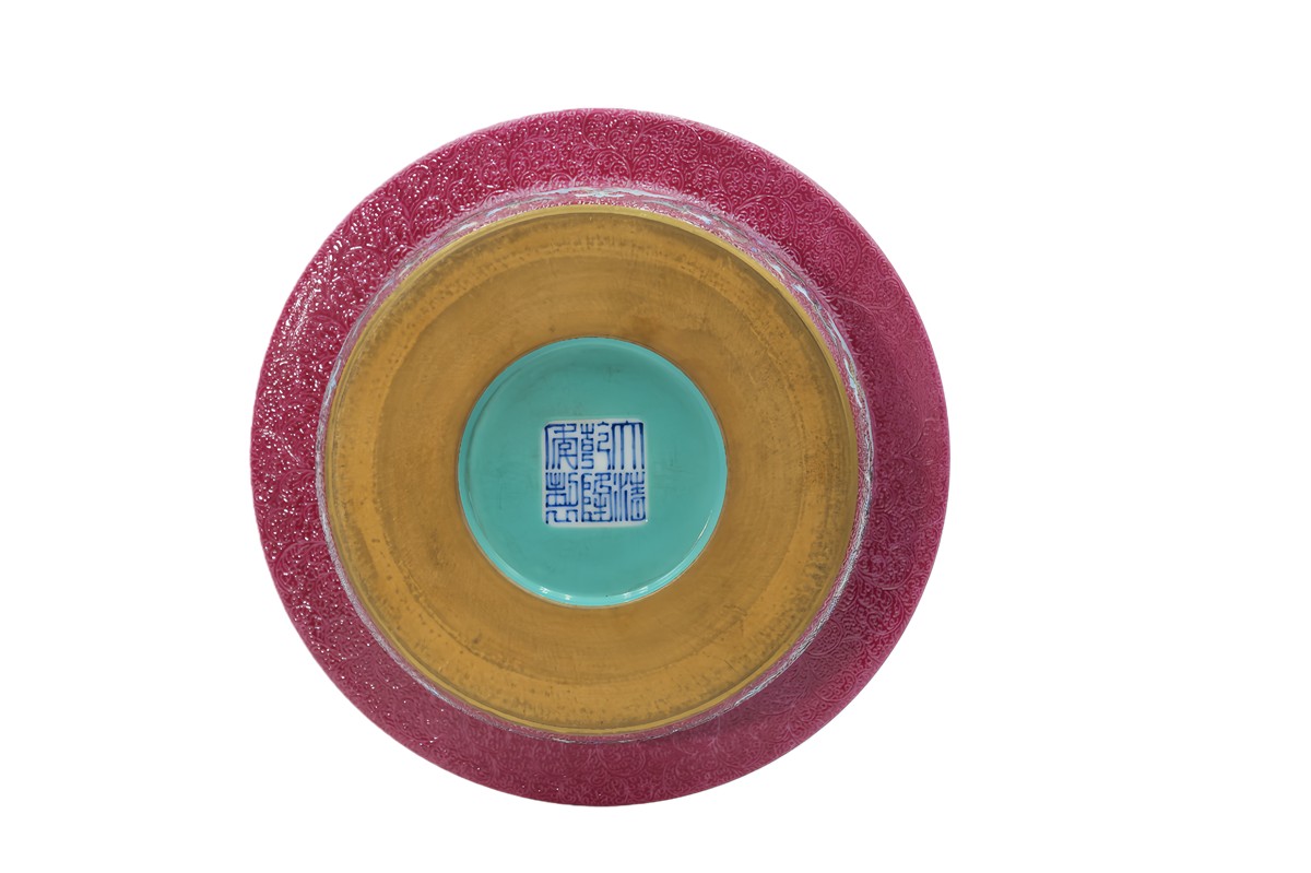松石绿釉天圆地方诗文瓶