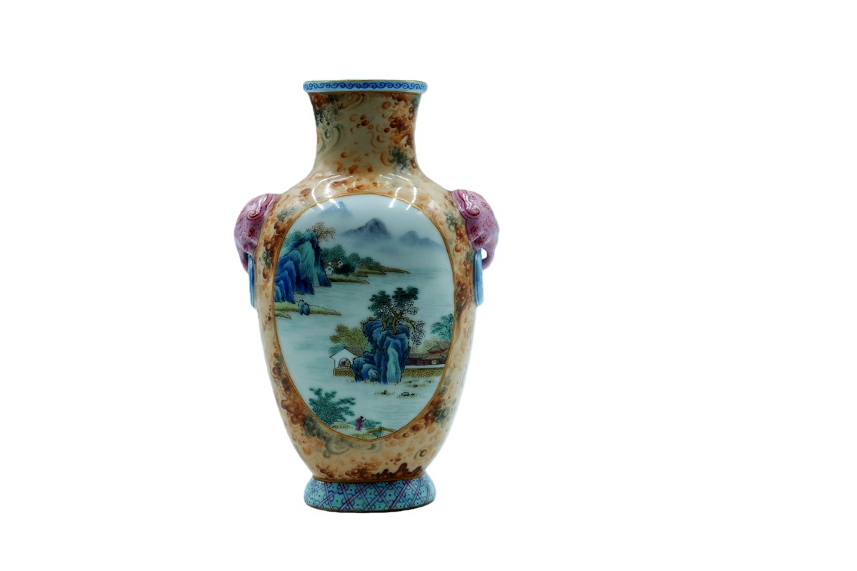 粉彩安居乐业赏瓶