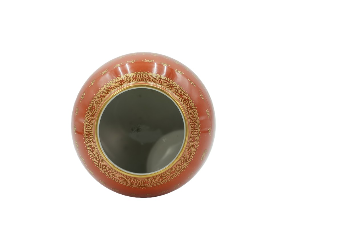 松石绿釉天圆地方诗文瓶