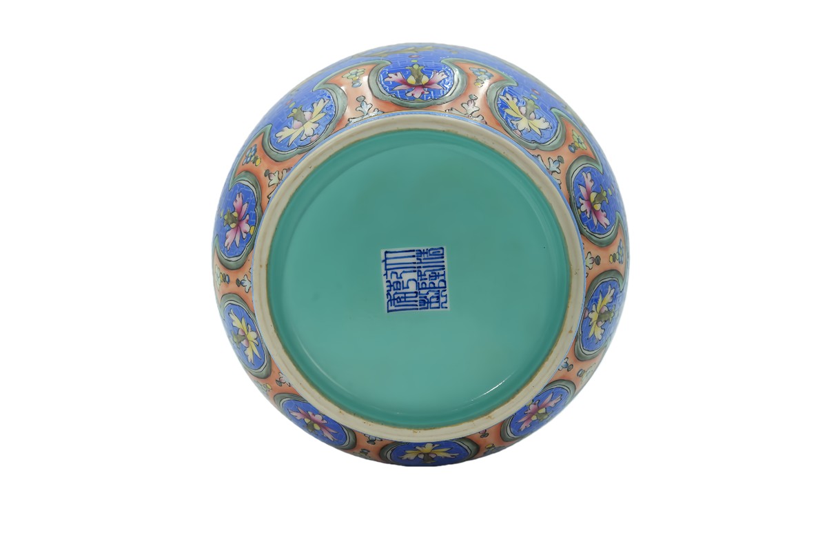 松石绿釉天圆地方诗文瓶